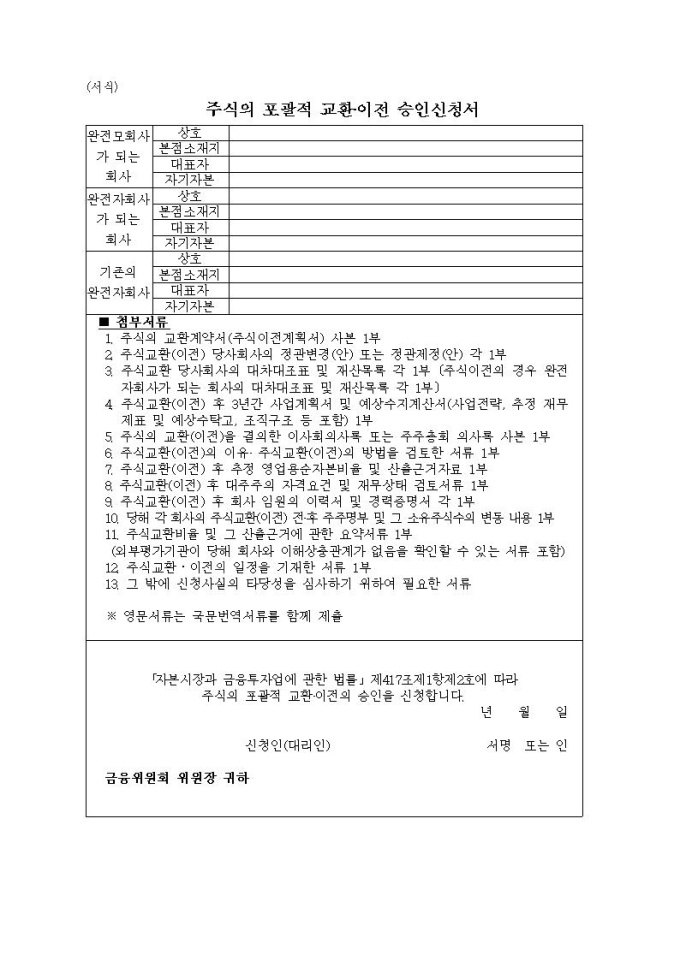 주식의 포괄적 교환·이전 승인