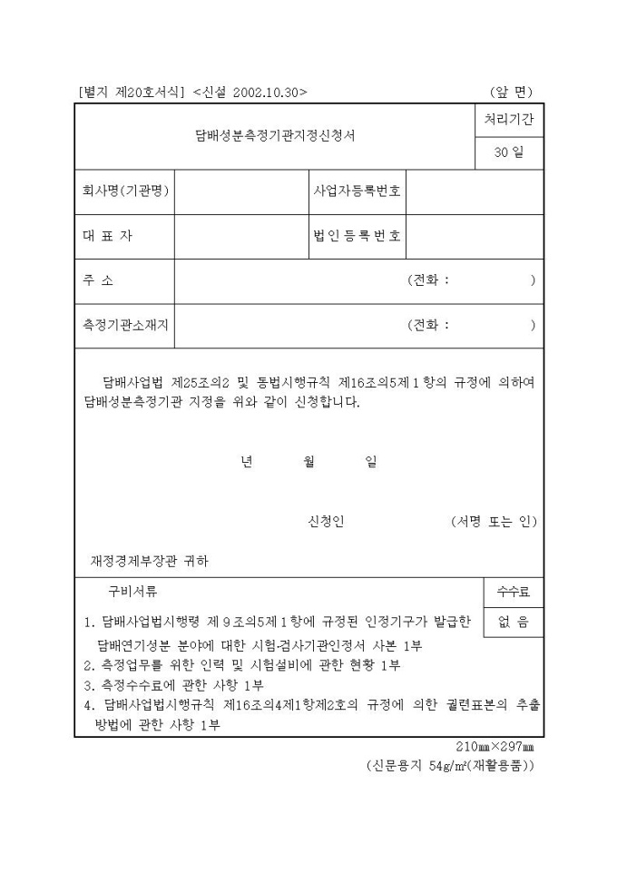 담배성분측정기관 지정신청서