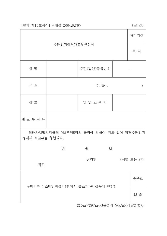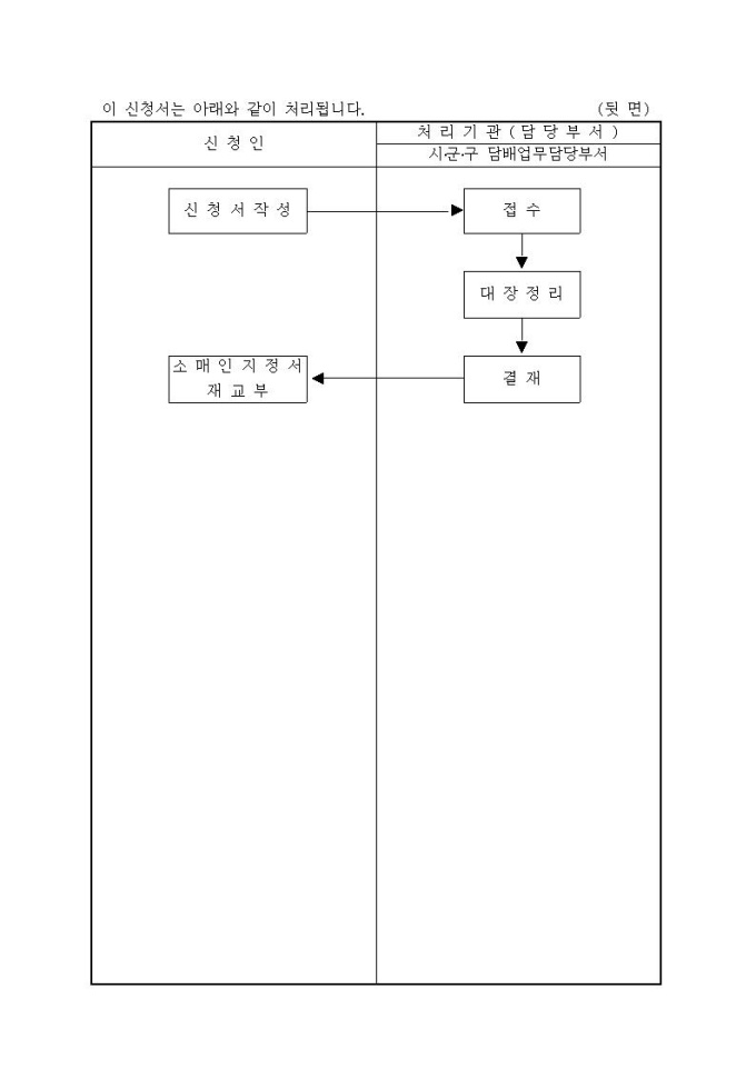 담배소매인지정서재교부신청서