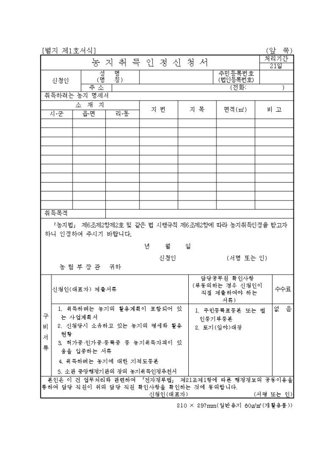[서식1] 농지취득인정신청서