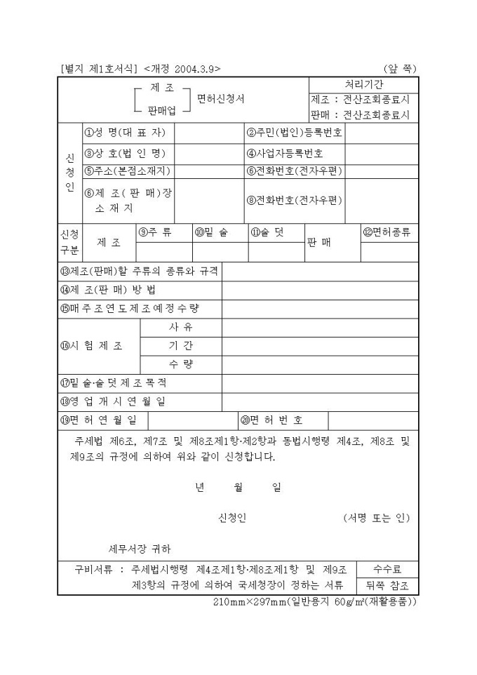 [서식1]농업인등및주류부문전통식품명인의 주류제조면허추천