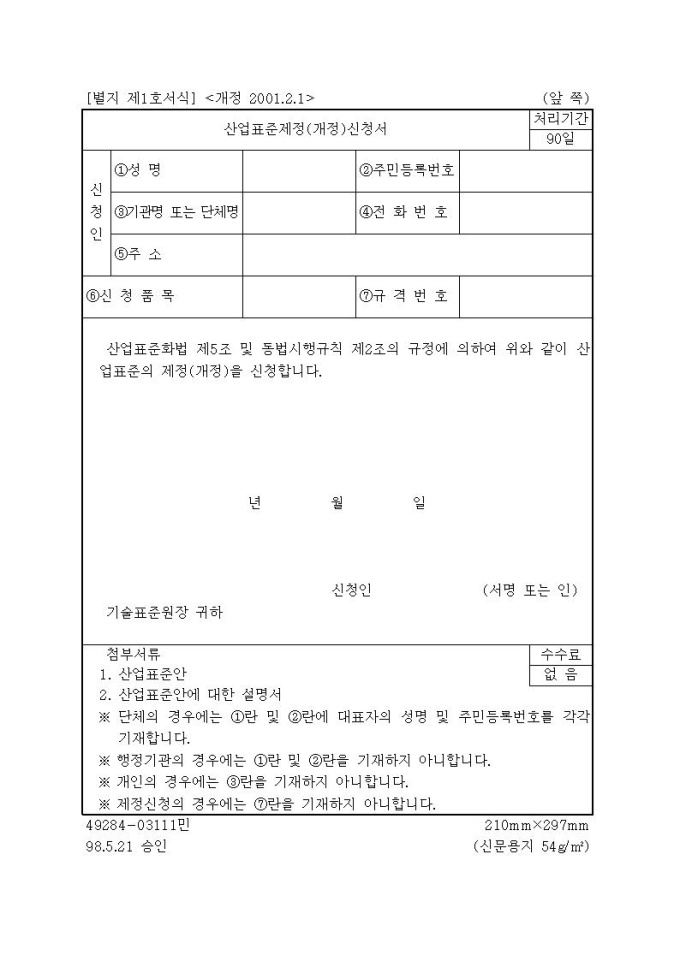 [서식1]산업규격제정(개정.폐지)신청서(가공식품)