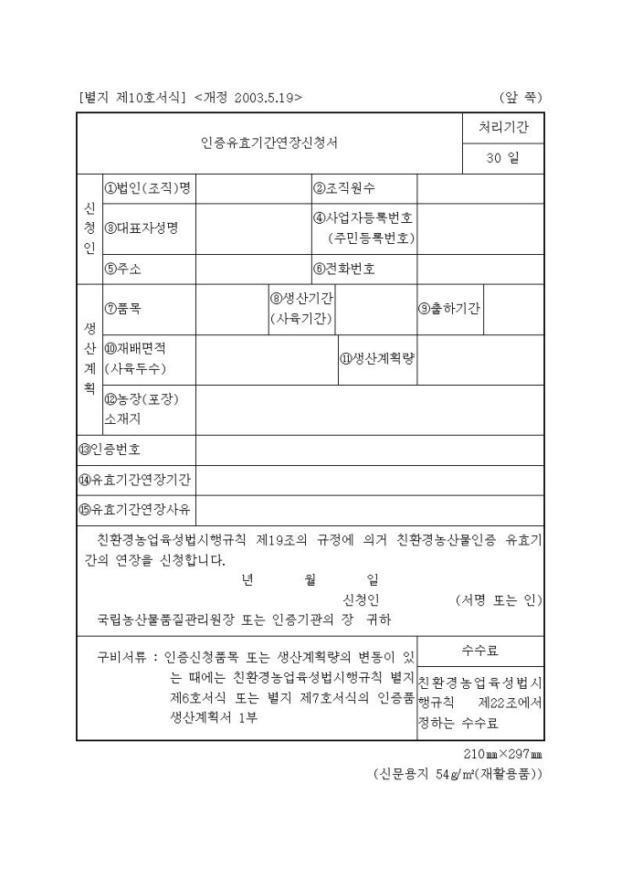 [서식10]친환경농산물인증 유효기간연장신청