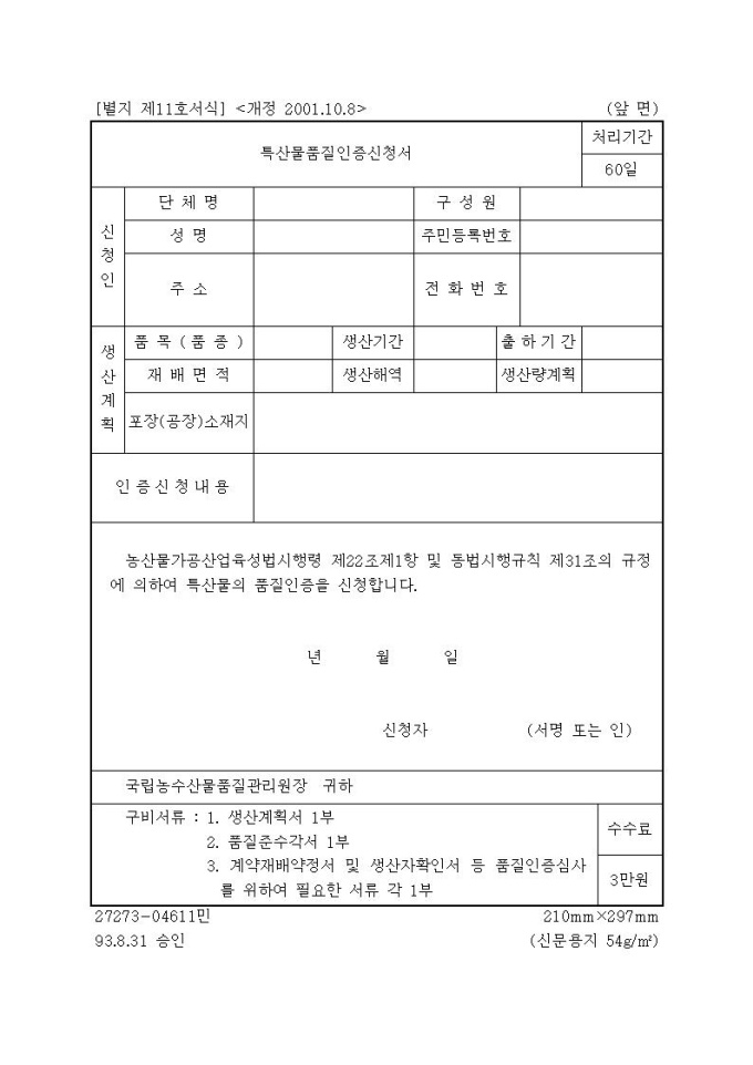 대한민국 정부가 사무의 간소화 및 정보화를 위해 제정하는 사무관리규정에 따라 배포하는 표준서식 입니다. 법규문서, 고시·공고 등에 쓰이는 공고문서, 허가·인가·승인·등록·증명에 관련된 민원문서 등 다양한 행정문서가 개정되었습니다.