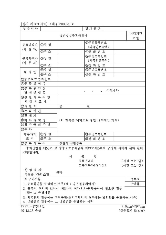 [서식12]질권설정등록신청서