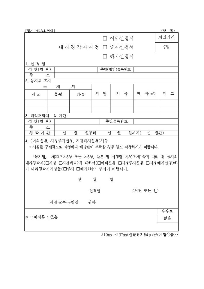 [서식13] 대리경자자지정(이의신청서.중지신청서.해지신청서)