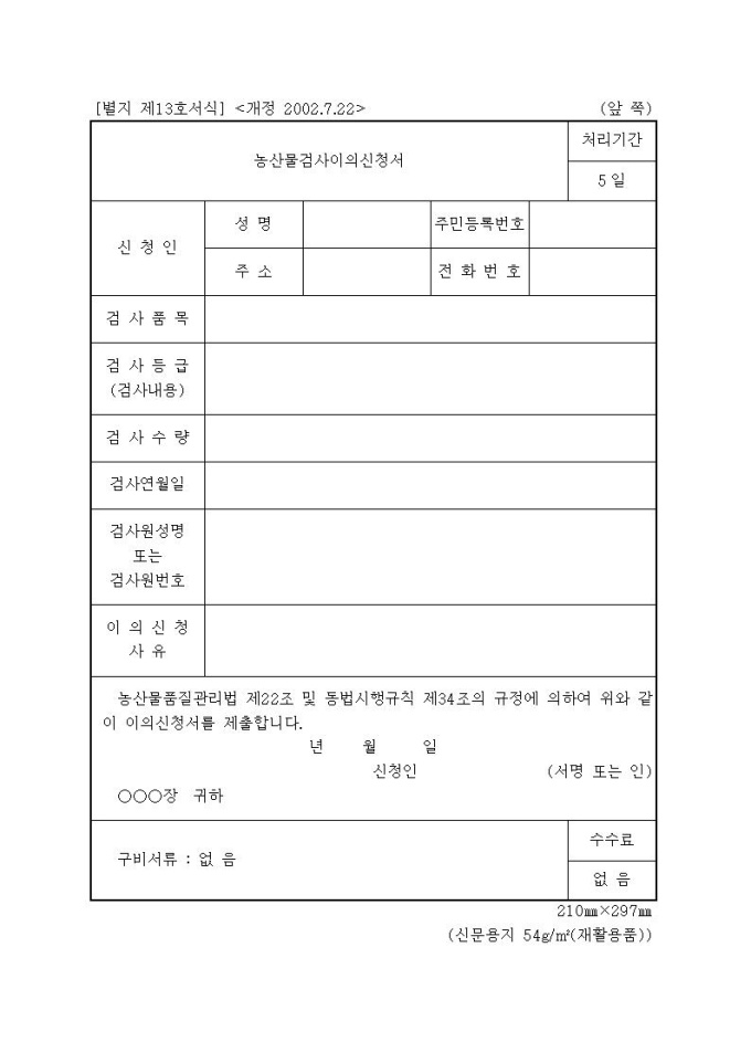 [서식13]농산물검사이의신청서