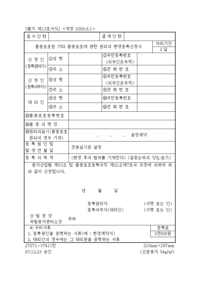 [서식13]품종보호권 기타 품종보호에 관한 권리의 변경등록신청서