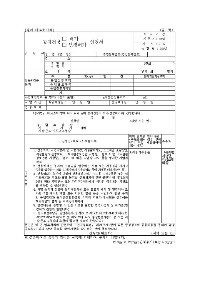 [서식14] 농지전용(허가.변경허가)신청서