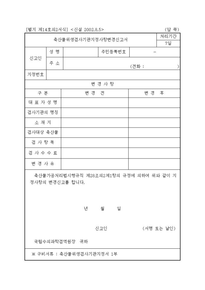 [서식14의 2]축산물위생검사기관지정사항변경신고서