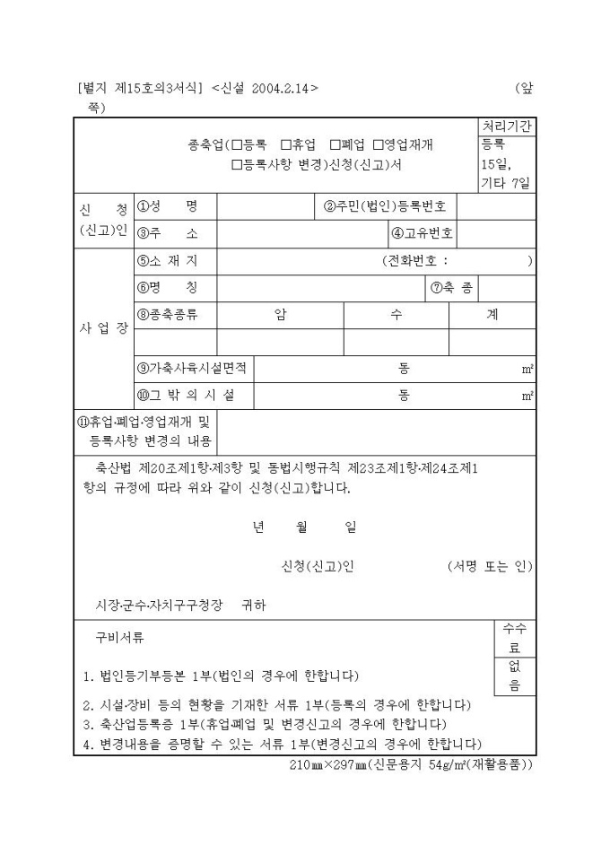 [서식15의 3]종축업(등록.휴업.폐업.영업재개.등록사항변경)신청(신고)서