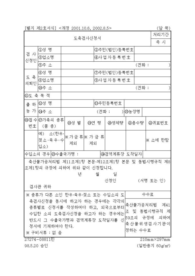 [서식2]도축검사신청서