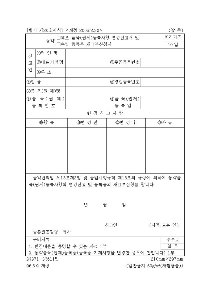[서식20]농약등록증의 재교부