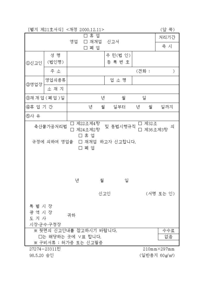 [서식21]영업(휴업,재개업,폐업)신고서