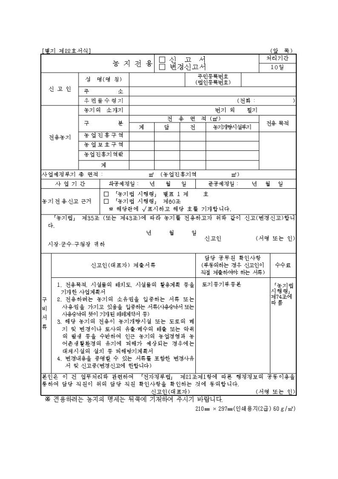 [서식22] 농지전용(신고서.변경신고서)