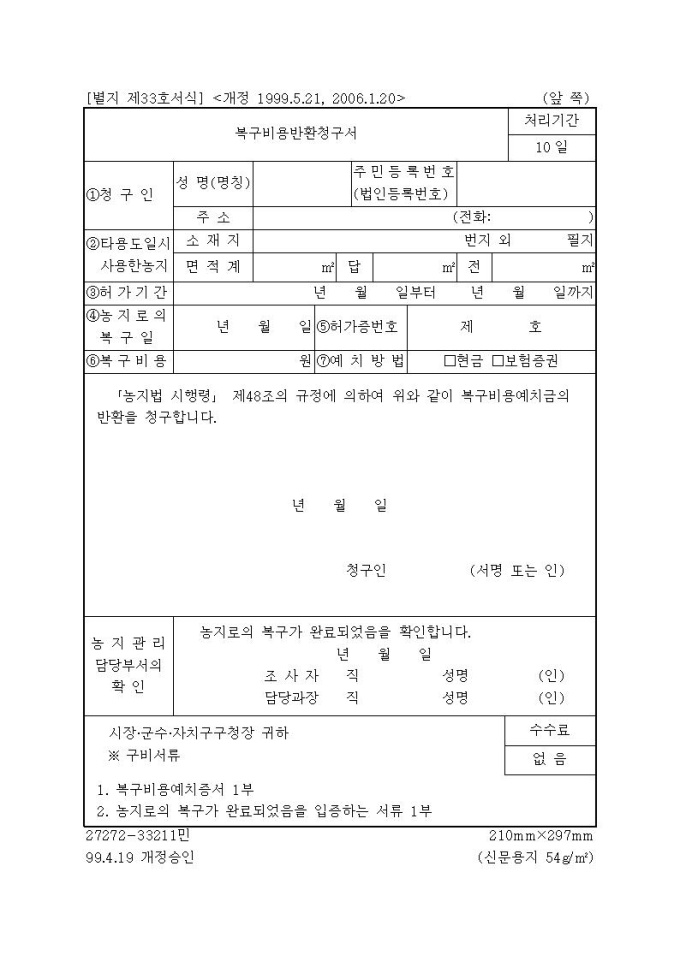 [서식33]복구비용반환청구