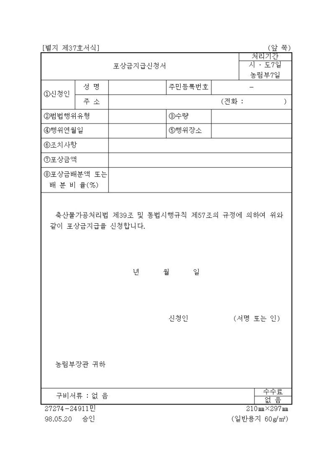 [서식37]포상금지급신청서