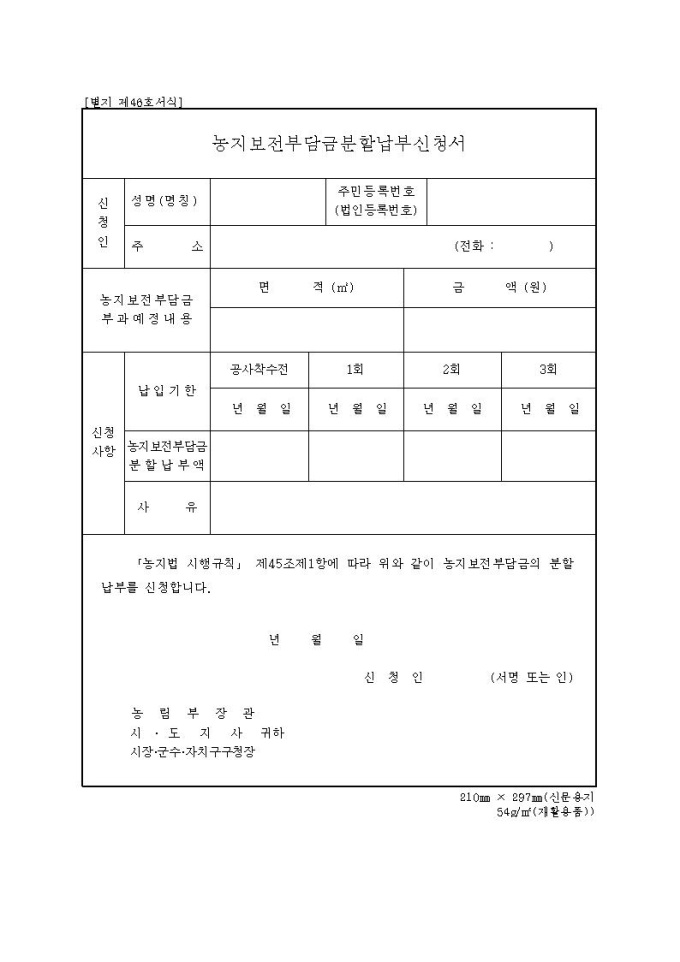 [서식46] 농지보전부담금분할납부신청서