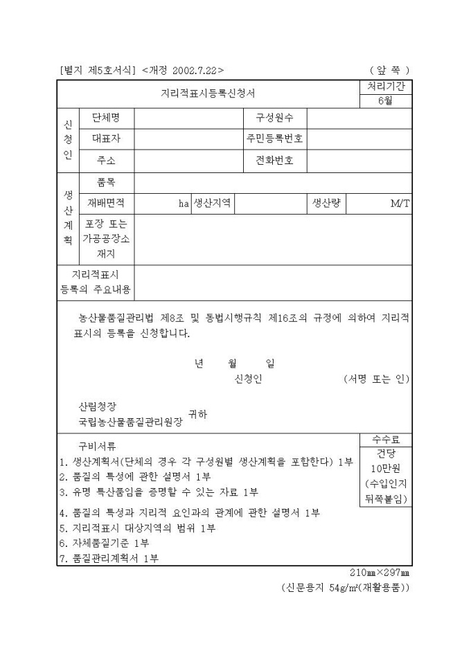 [서식5]지리적표시등록신청서