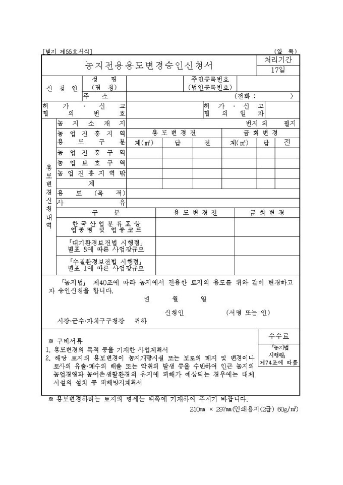 [서식55] 농지전용용도변경승인신청서