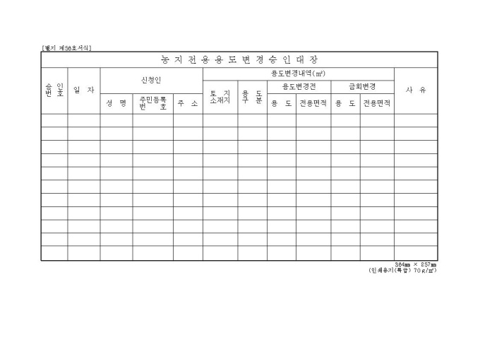 [서식56] 농지전용용도변경승인대장