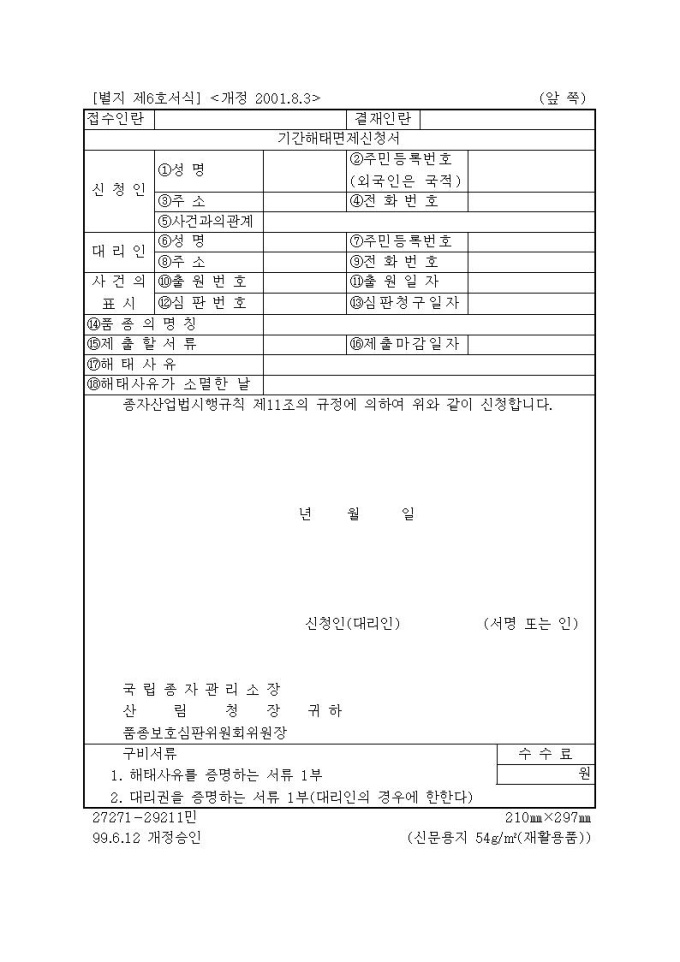 [서식6]기간해태면제신청서
