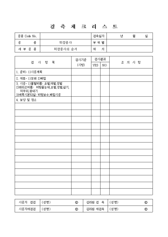 미장견출공사,미장공사의순서 체크리스트 입니다.