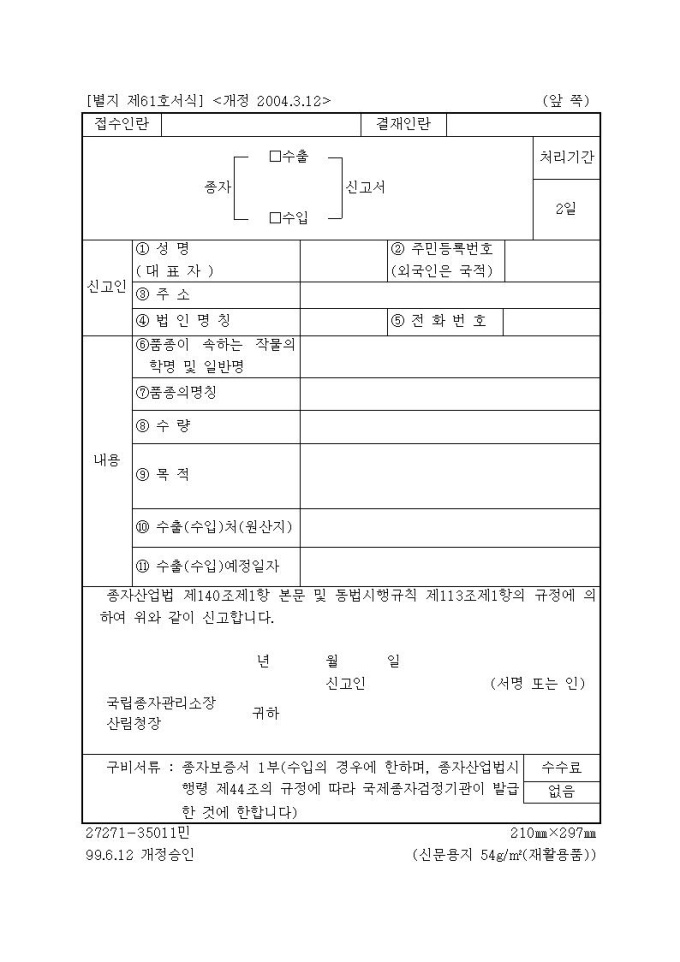 [서식63]종자(수출.수입)신고서
