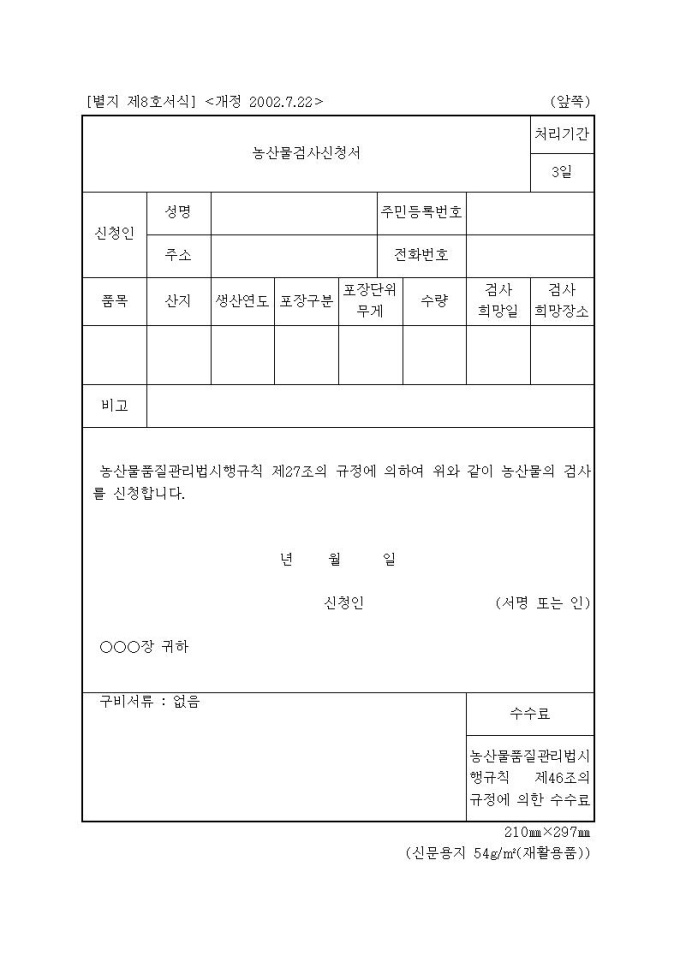 [서식8]농산물검사신청서