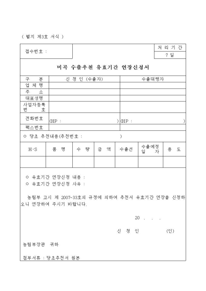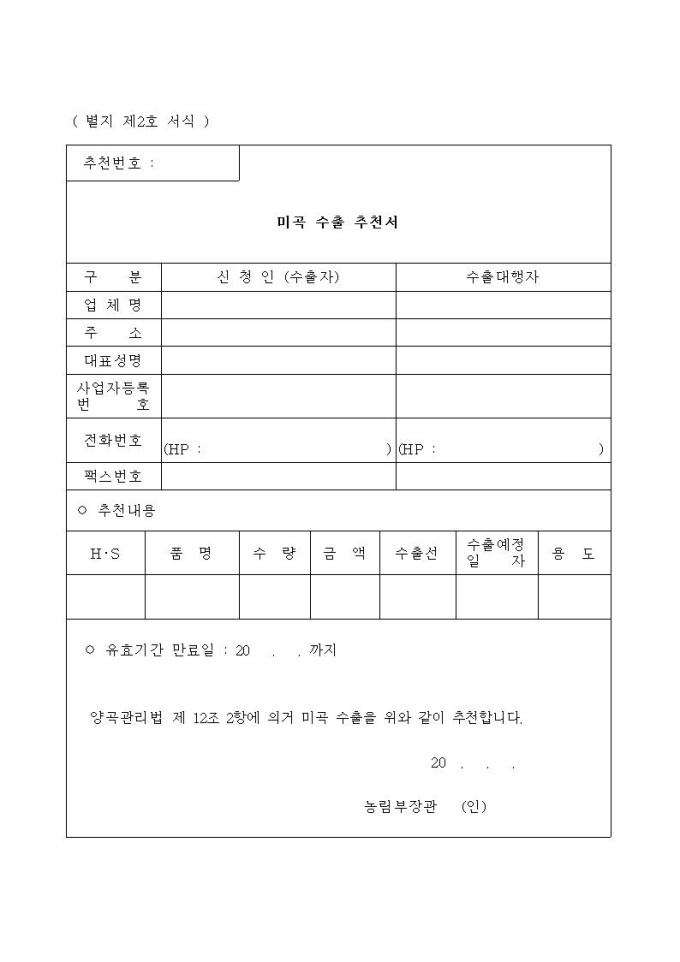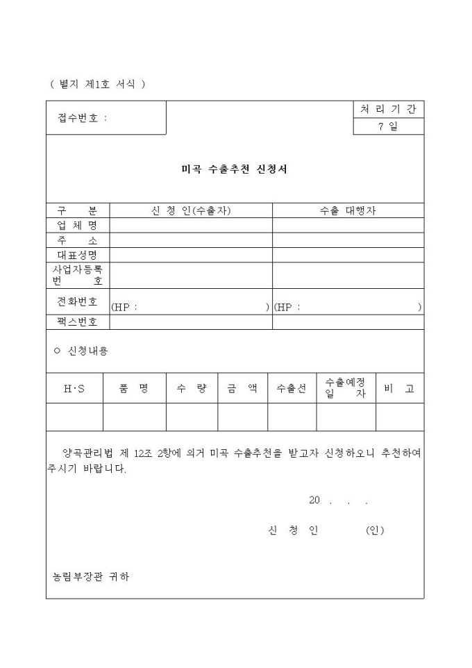 미곡수출신청서 및 신청서