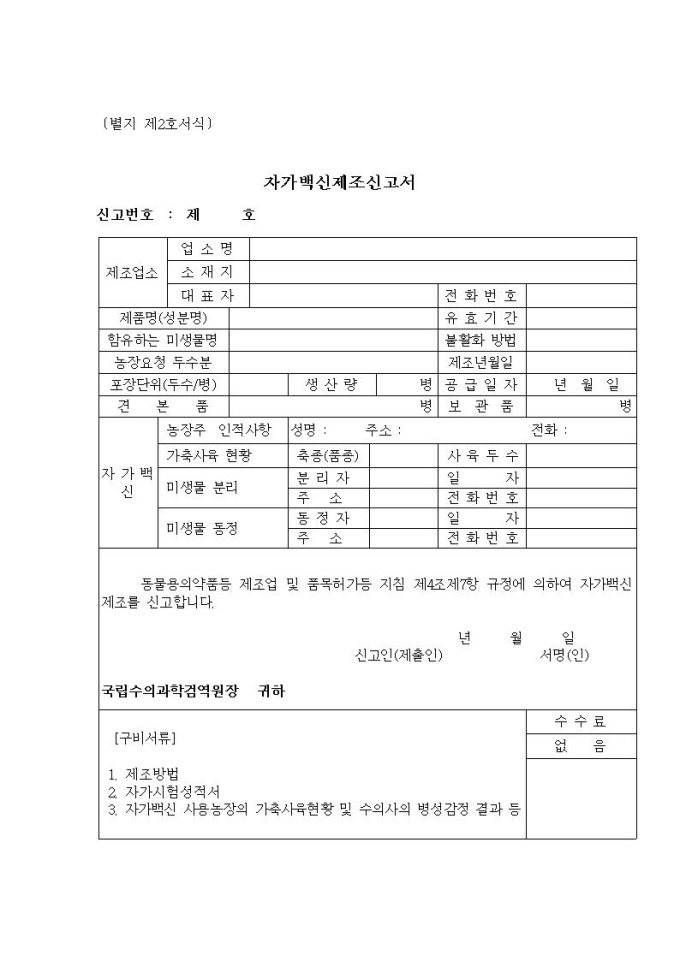 자가백신제조신고서