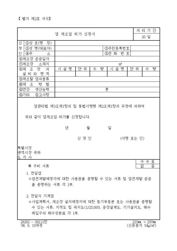 염제조업허가신청서
