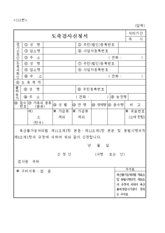도축검사신청서