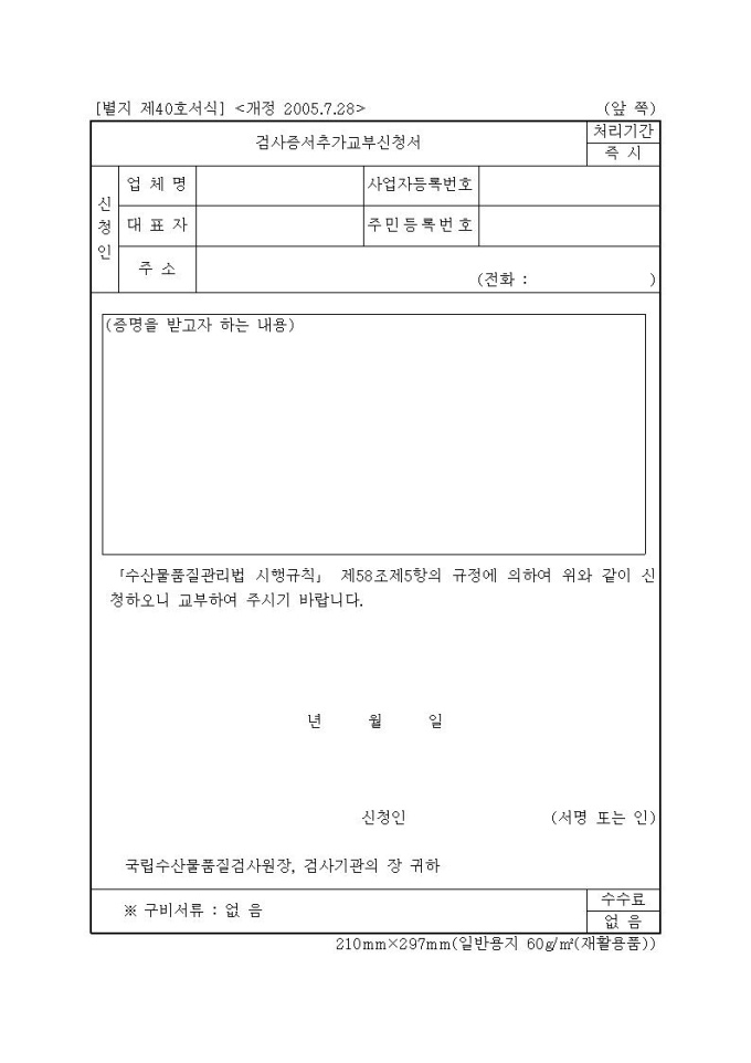 검사증서추가교부신청