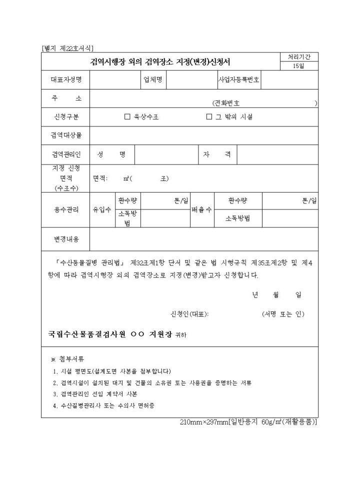 검역시행장 외의 검역장소 지정(변경)신청서