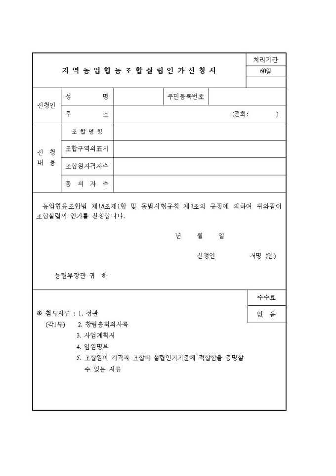 지역농업협동조합설립인가 신청서