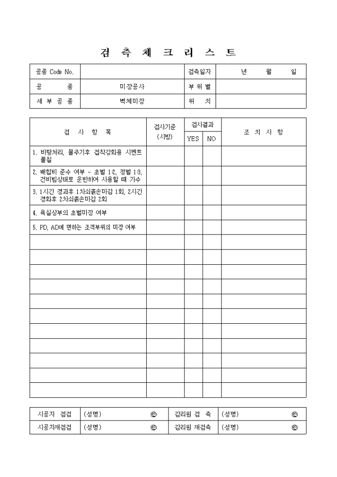 9,000원/월미장견출공사,벽체미장 체크리스트 입니다.