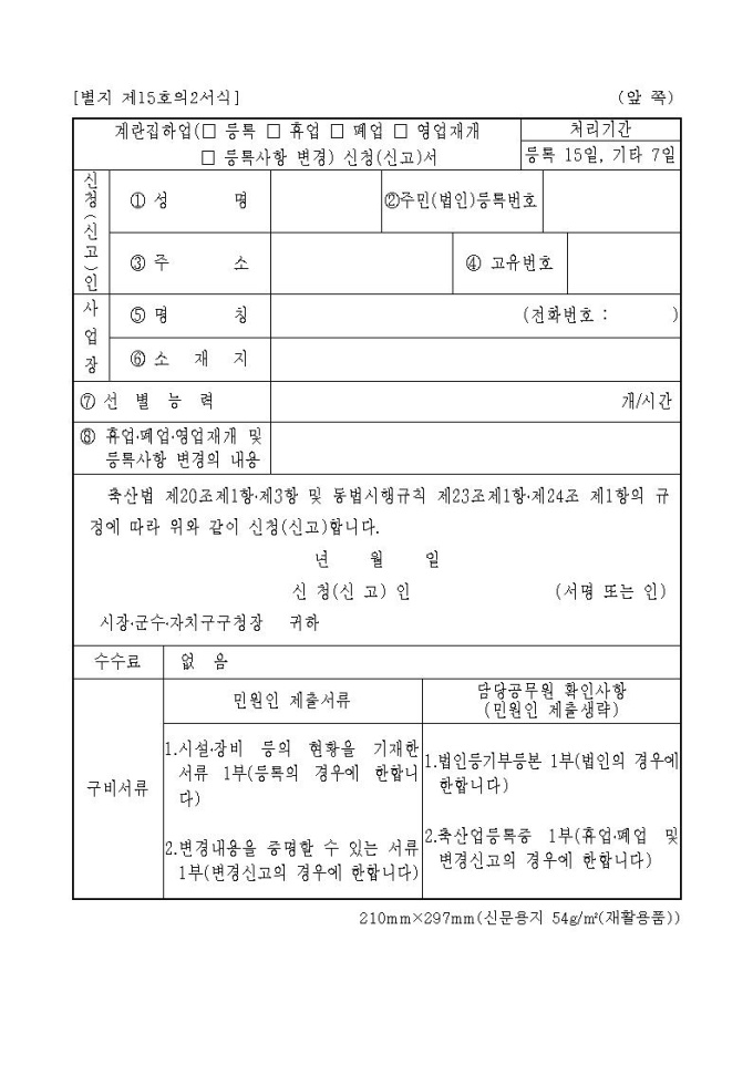 계란집하업(등록·휴업·폐업·영업재개·등록사항 변경) 신청(신고)서