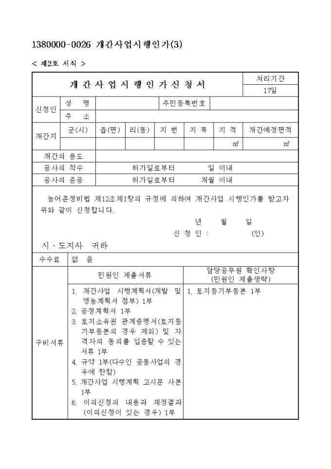 개간사업시행인가신청서