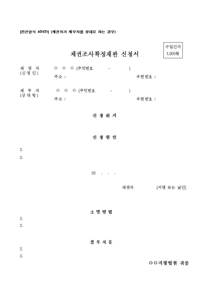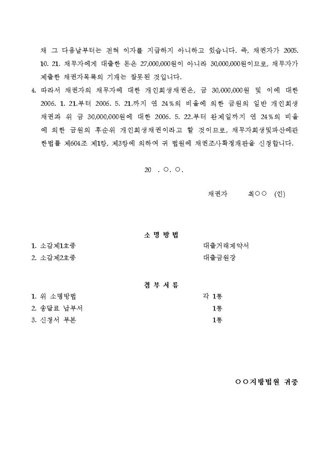 (채권자가 채무자를 상대로) 개인회생채권조사확정재판신청서