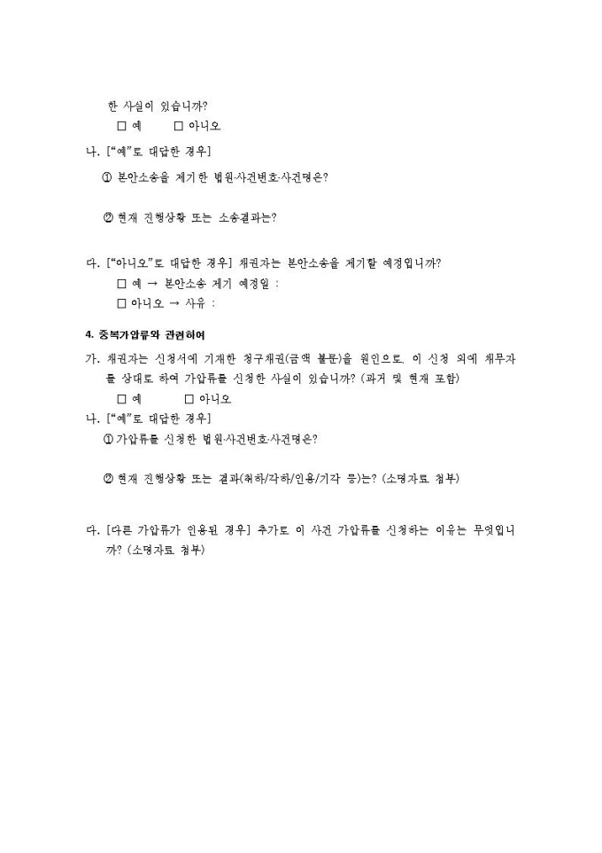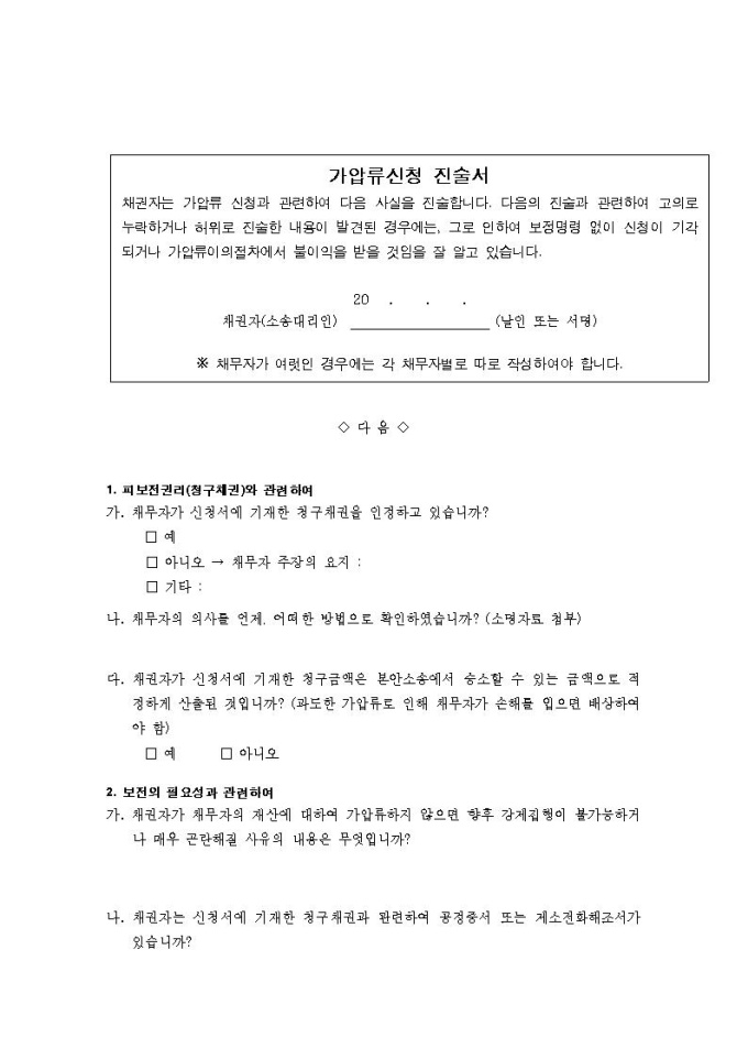 가압류신청 진술서