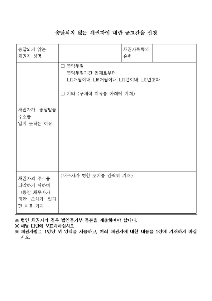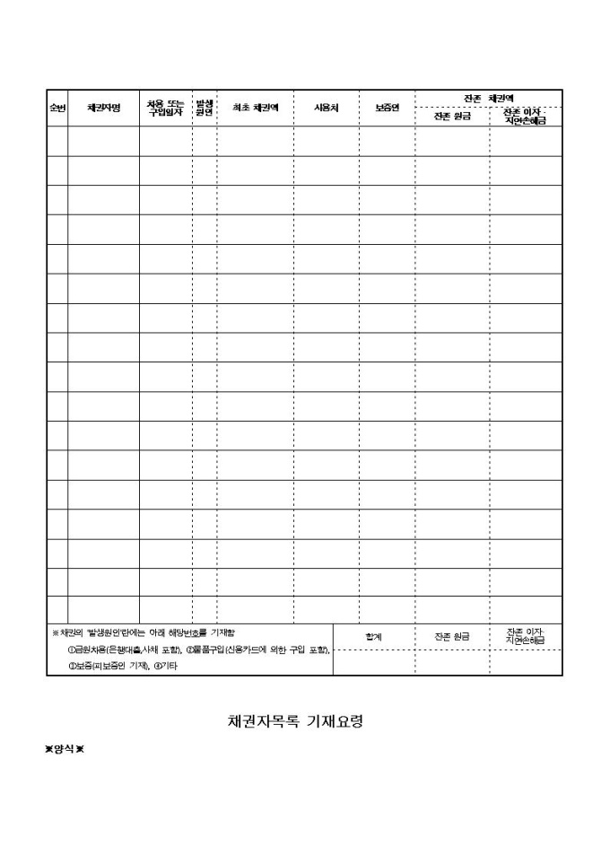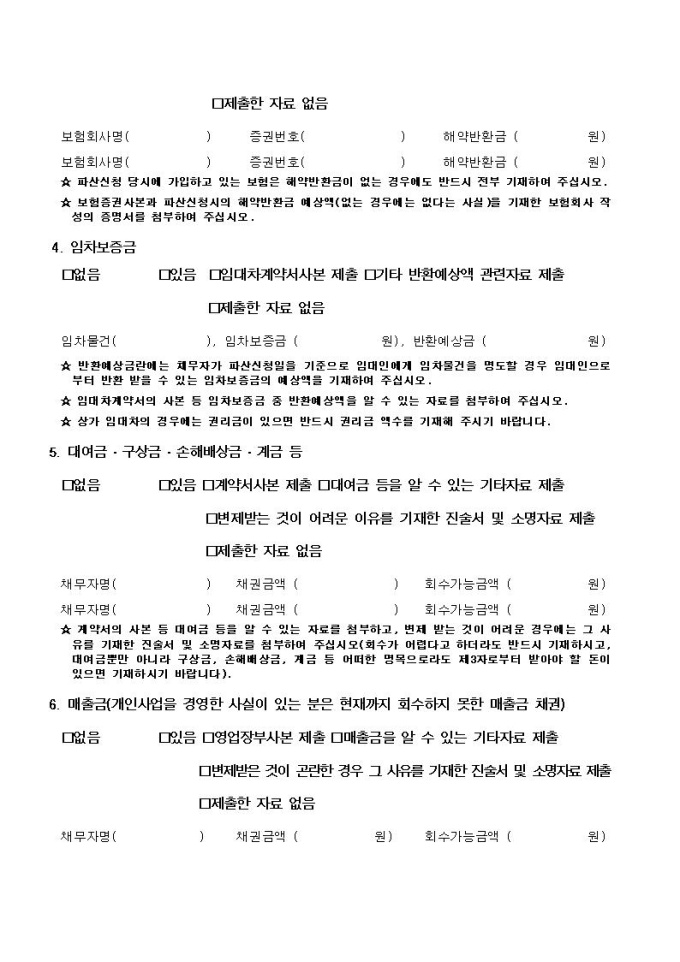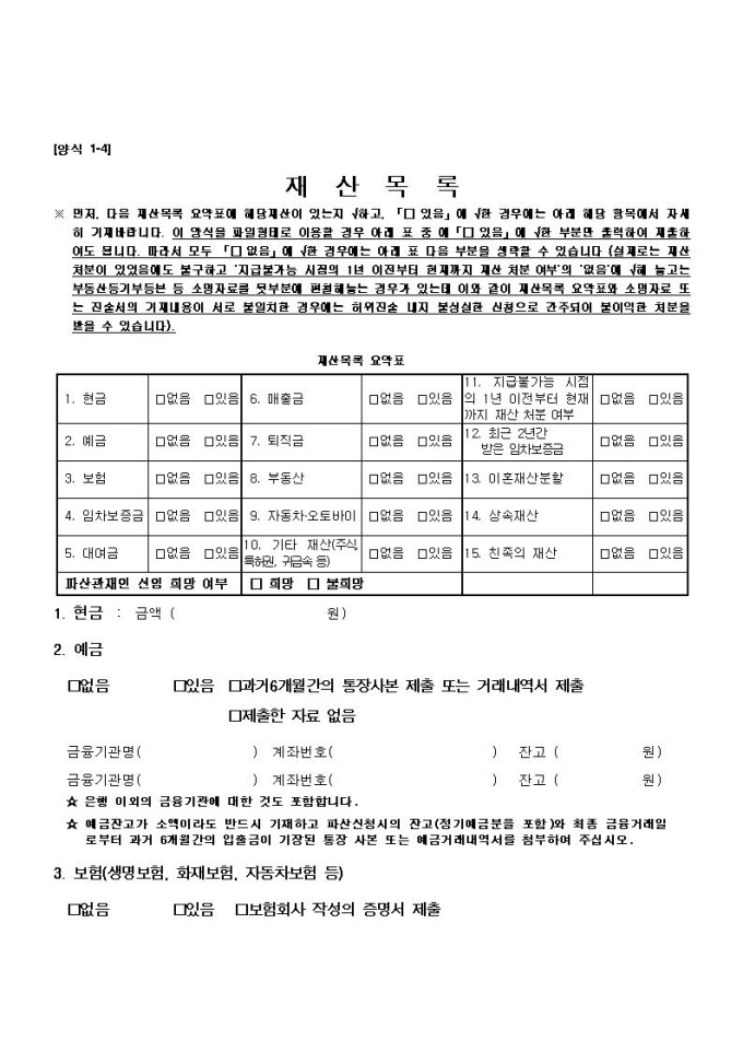 개인파산, 면책동시신청서 양식(광주지방법원용)