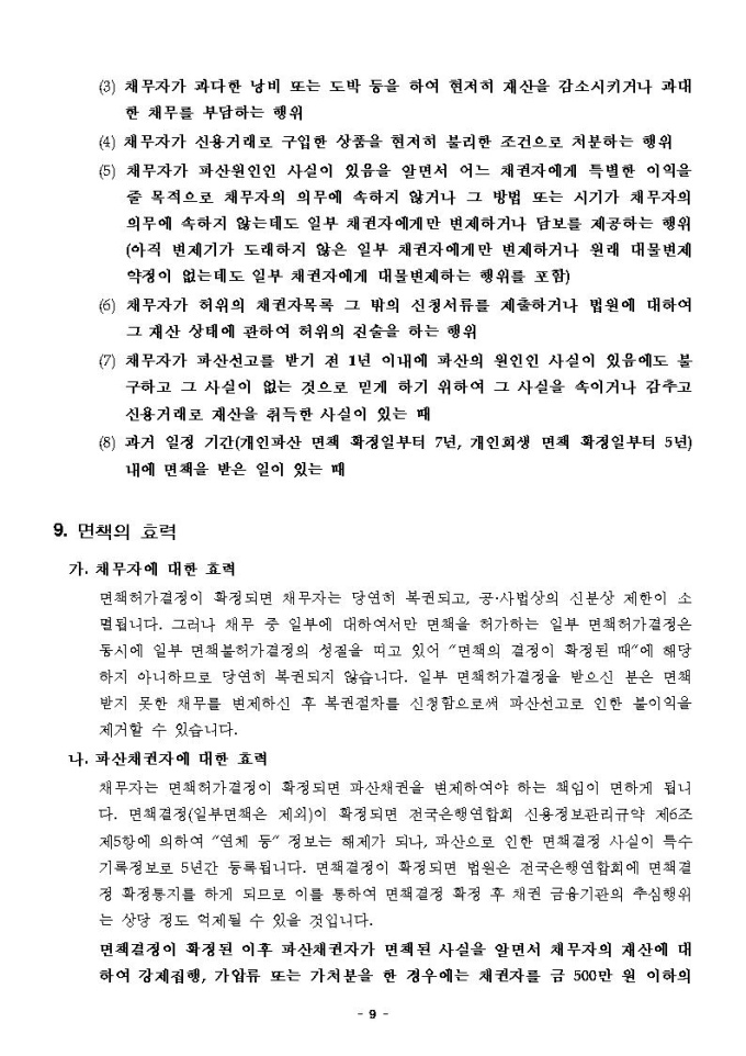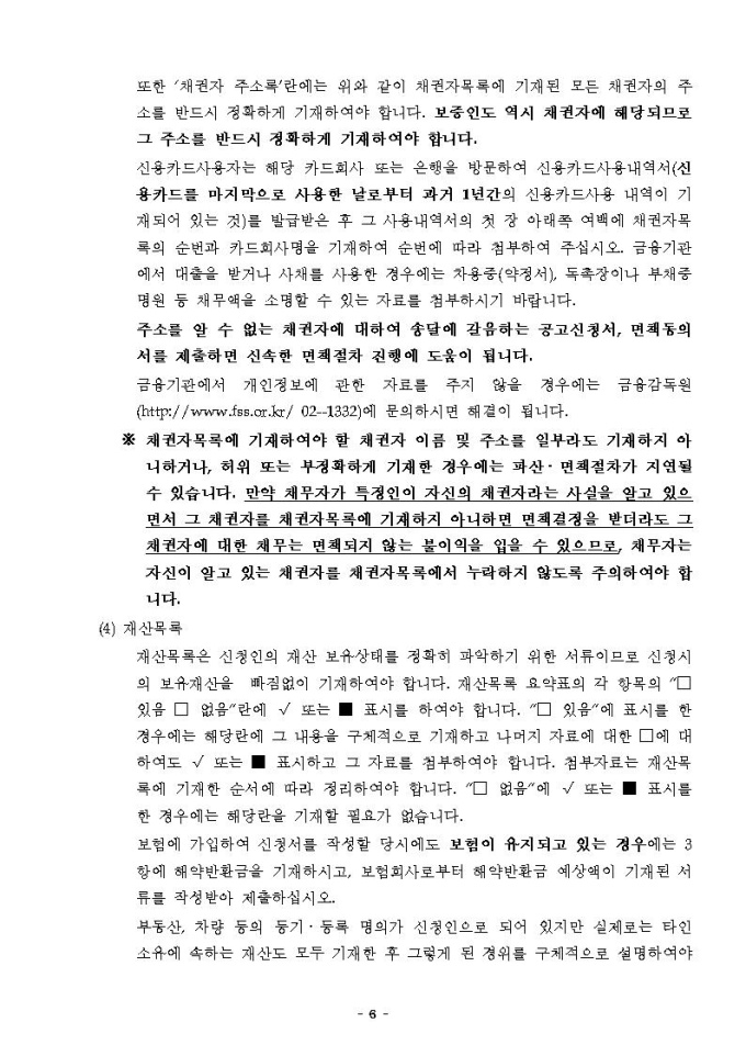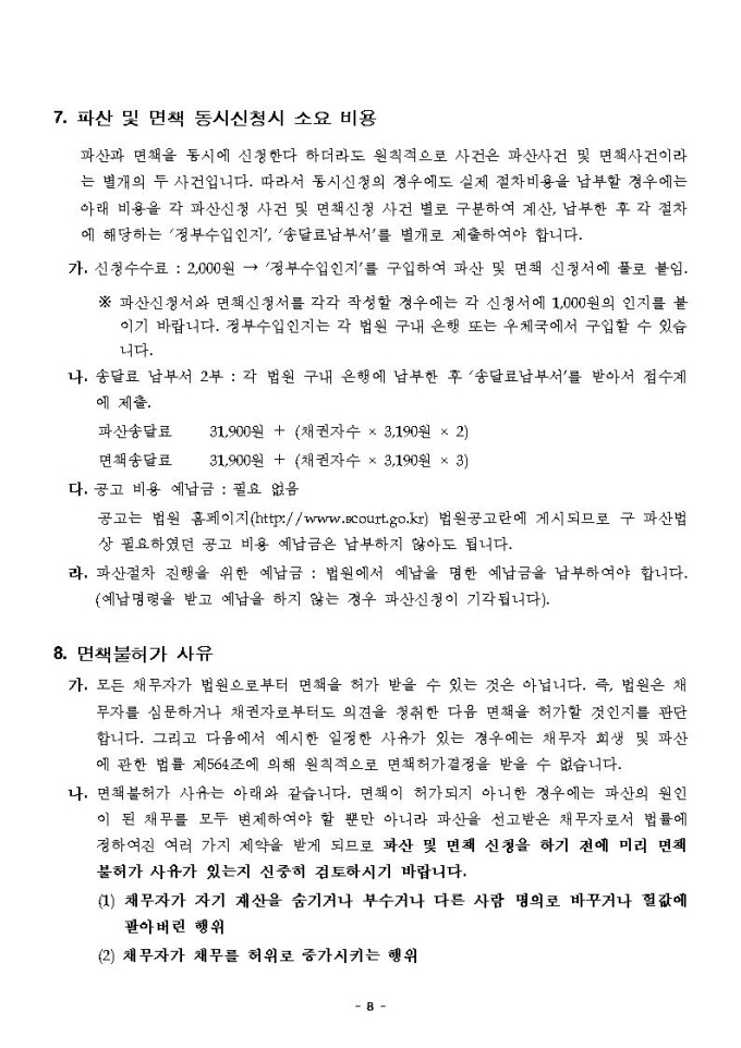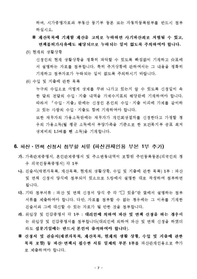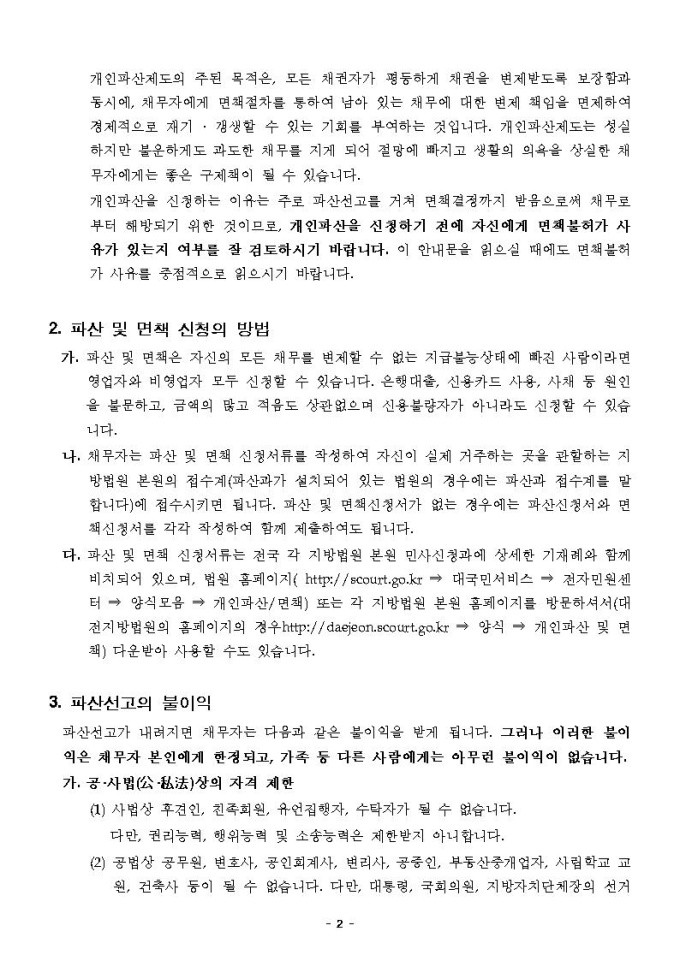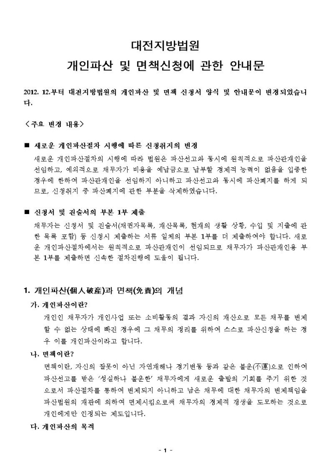 개인파산면책동시신청안내문(대전지방법원용)
