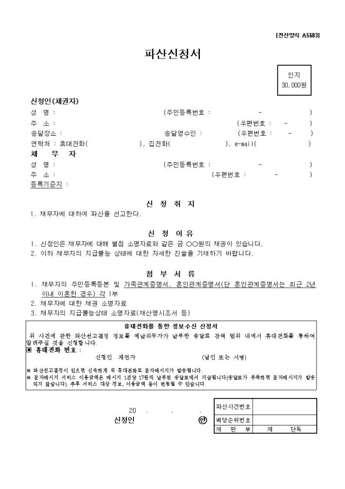 개인파산신청서(채권자) 양식
