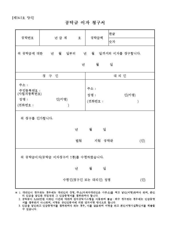 공탁금 이자 청구서