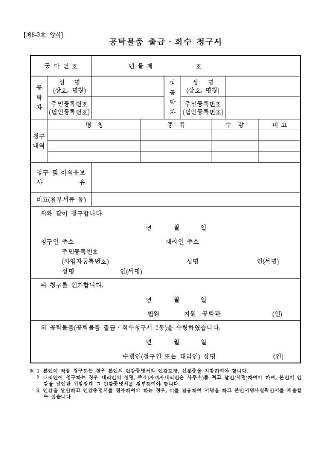 공탁물품 출급 회수 청구서