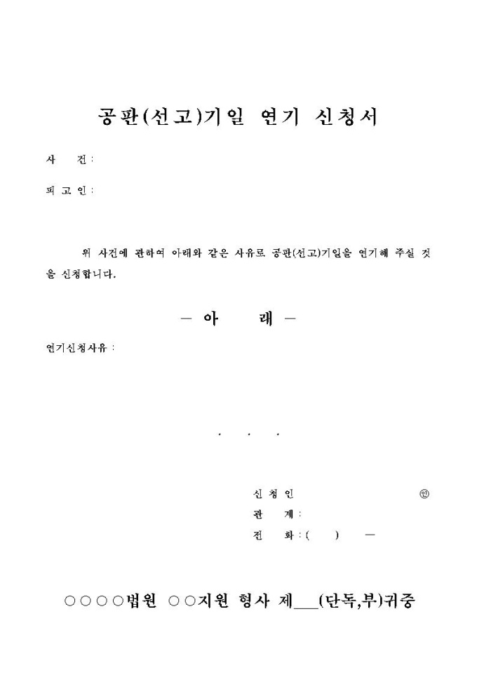 공판기일연기신청서