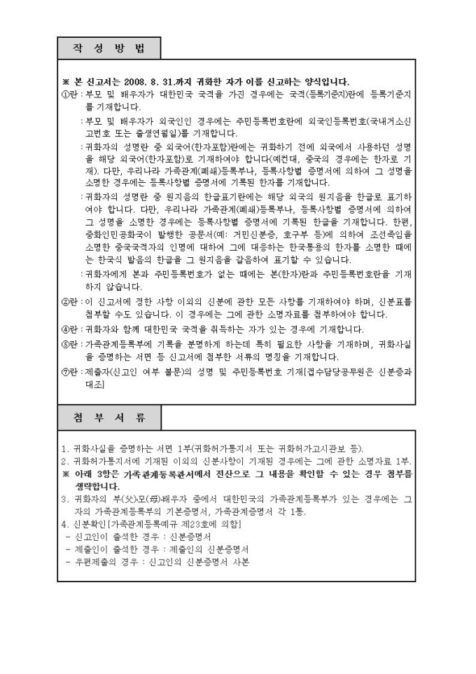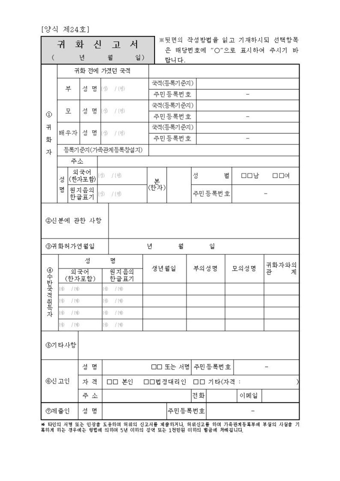 귀화신고서(시구읍면사무소 제출용)