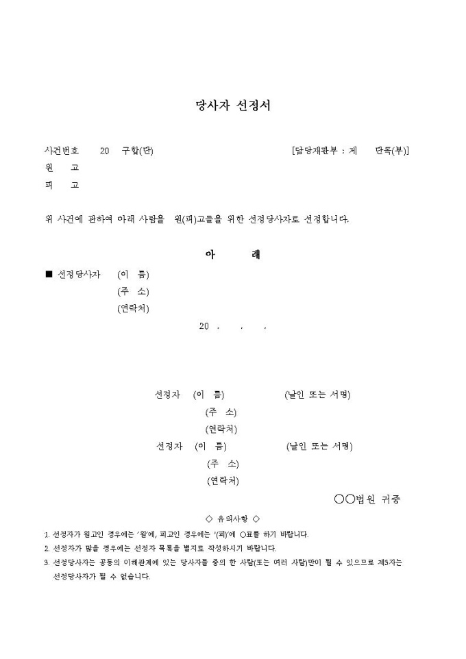 당사자 선정서