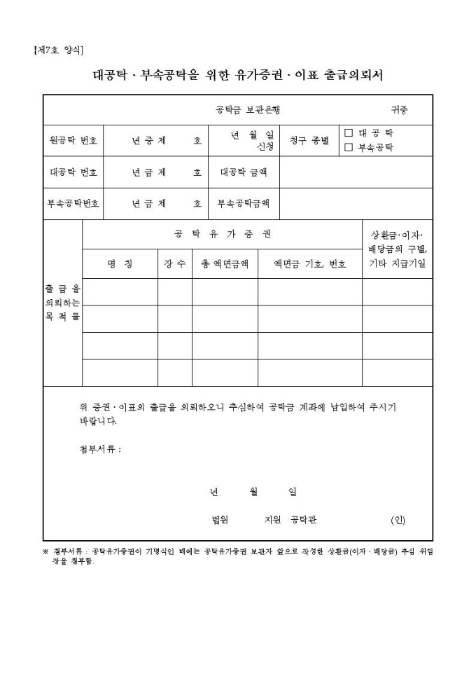 대공탁 부속공탁을 위한 유가증권 이표 출급의뢰서